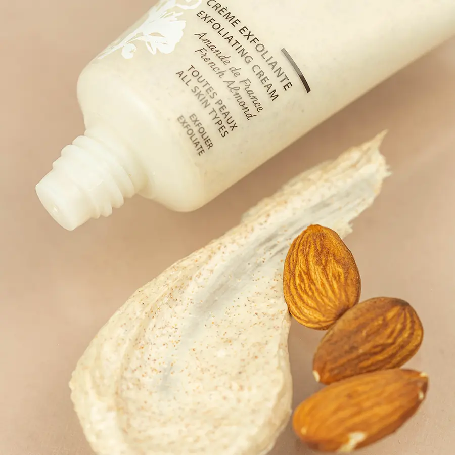 Ova nežna krema sa baštenskim esencijalnim uljem i puderom od ljuske badema eksfolira mrtve ćelije, uklanja nečistoće i oživljava umrtvljen ten.